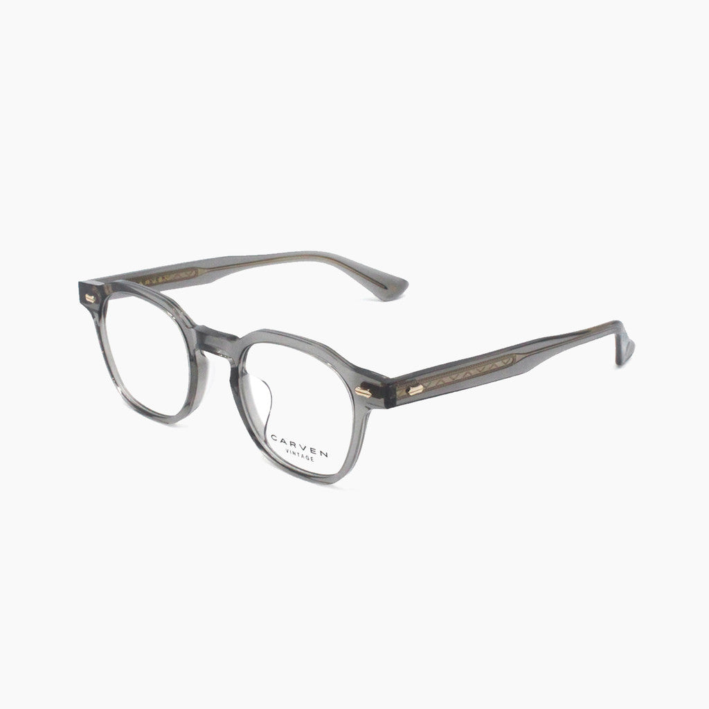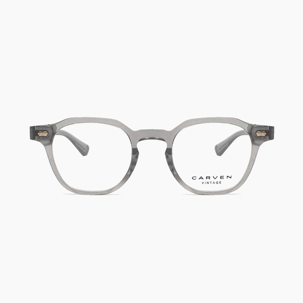 These grey frames are stylishly sharp. This Carven frame's timeless grey acetate design is colorized with gold accents.